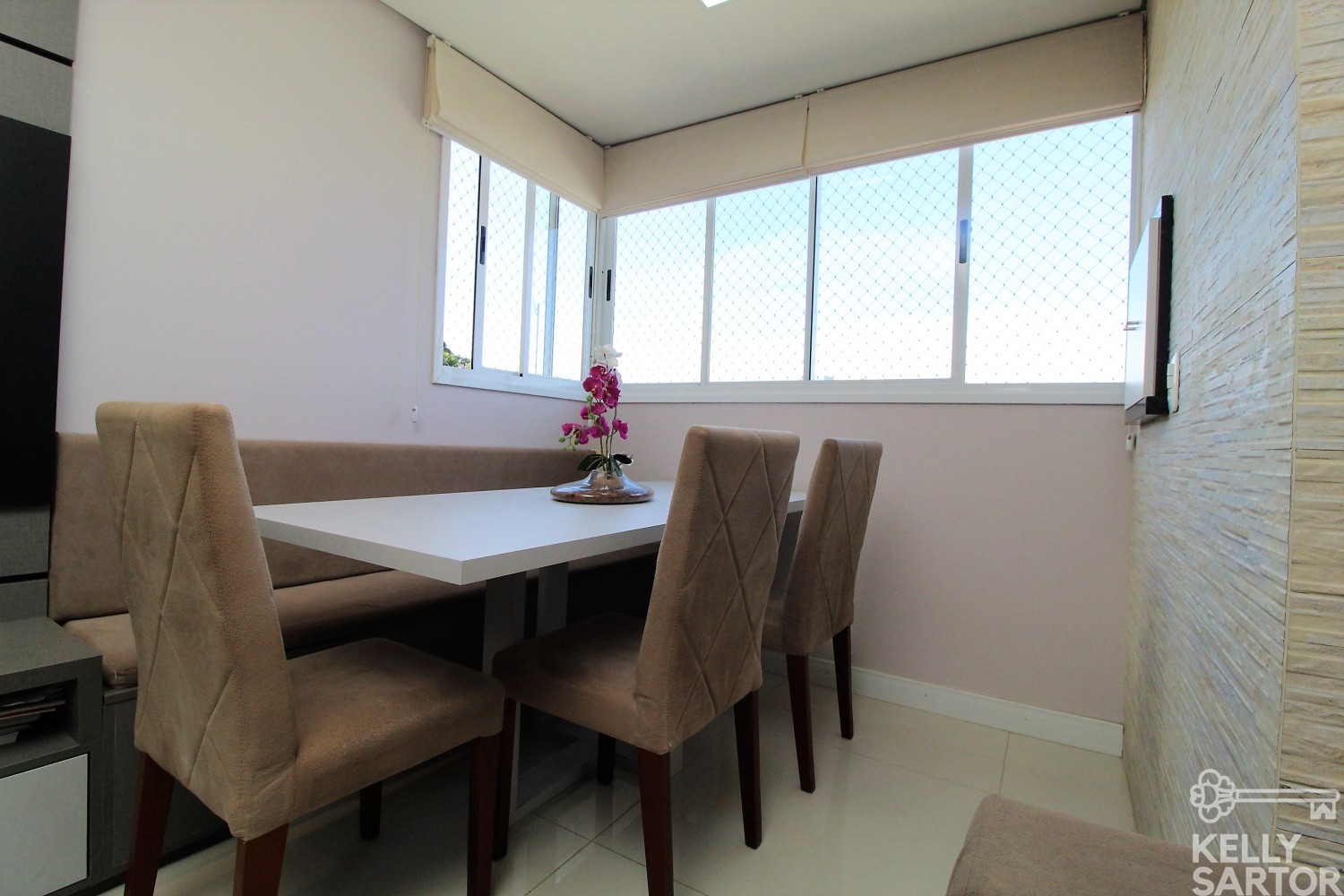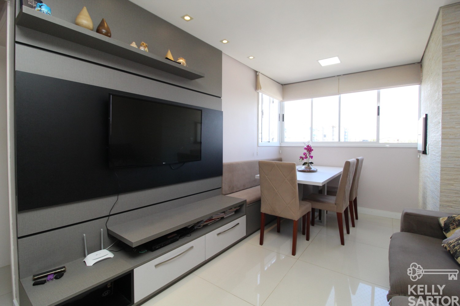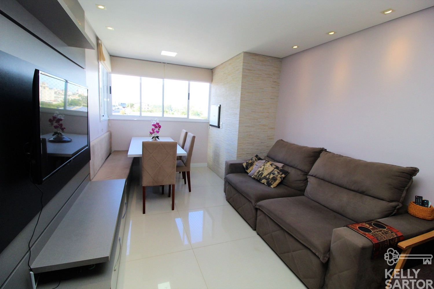 Descrição › KELLY SARTOR VENDE excelente apartamento semi-mobiliado à venda, no bairro São João/Vinhedos, composto por 02 dormitórios, 01 banheiro social, cozinha com bancada, sala com sacada integrada e churrasqueira. Apto com rebaixe em gesso, piso porcelanato na sala e banheiro, piso vinílico nos dormitórios e piso cerâmico na cozinha. Posição Solar leste e norte. Área Privativa: 47,67m². 1 Box de garagem.