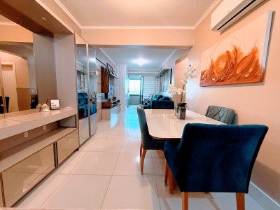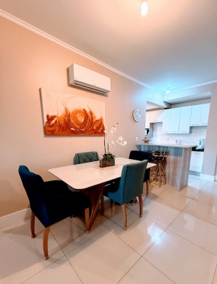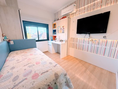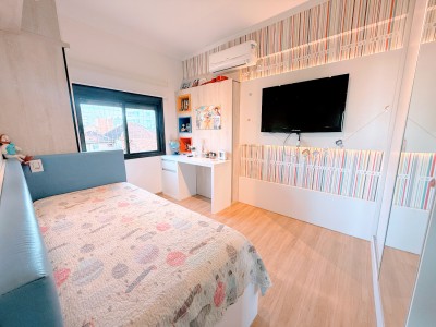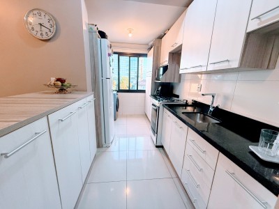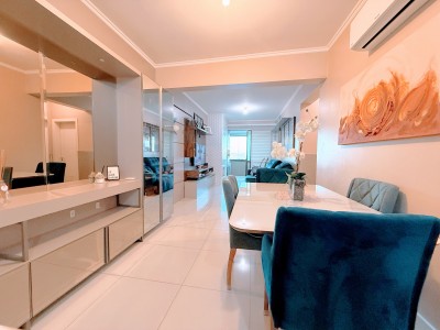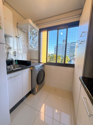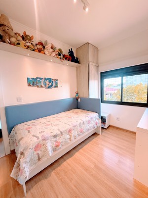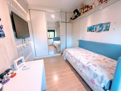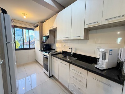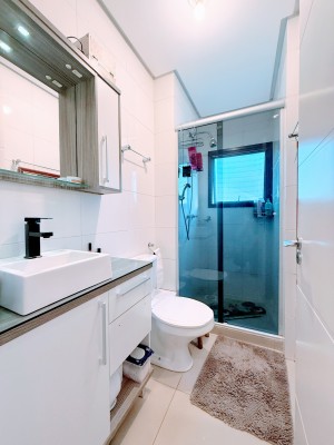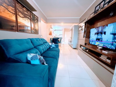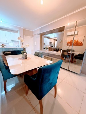 O apartamento possui dois amplos e bem iluminados dormitórios, sendo uma suíte, cozinha e área de serviço equipadas, banheiro social, além de sala de estar e jantar integradas com uma aconchegante lareira. Outro ponto alto do apartamento é a sacada fechada com churrasqueira para momentos especiais com amigos e familiares, neste mesmo ambiente é possível ter um escritório, excelente para quem trabalha home office. Possui ainda uma vaga de garagem com 12,13 m² e um depósito com 2,87m².