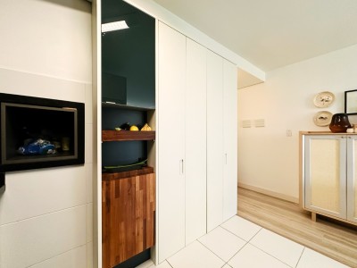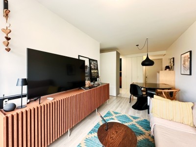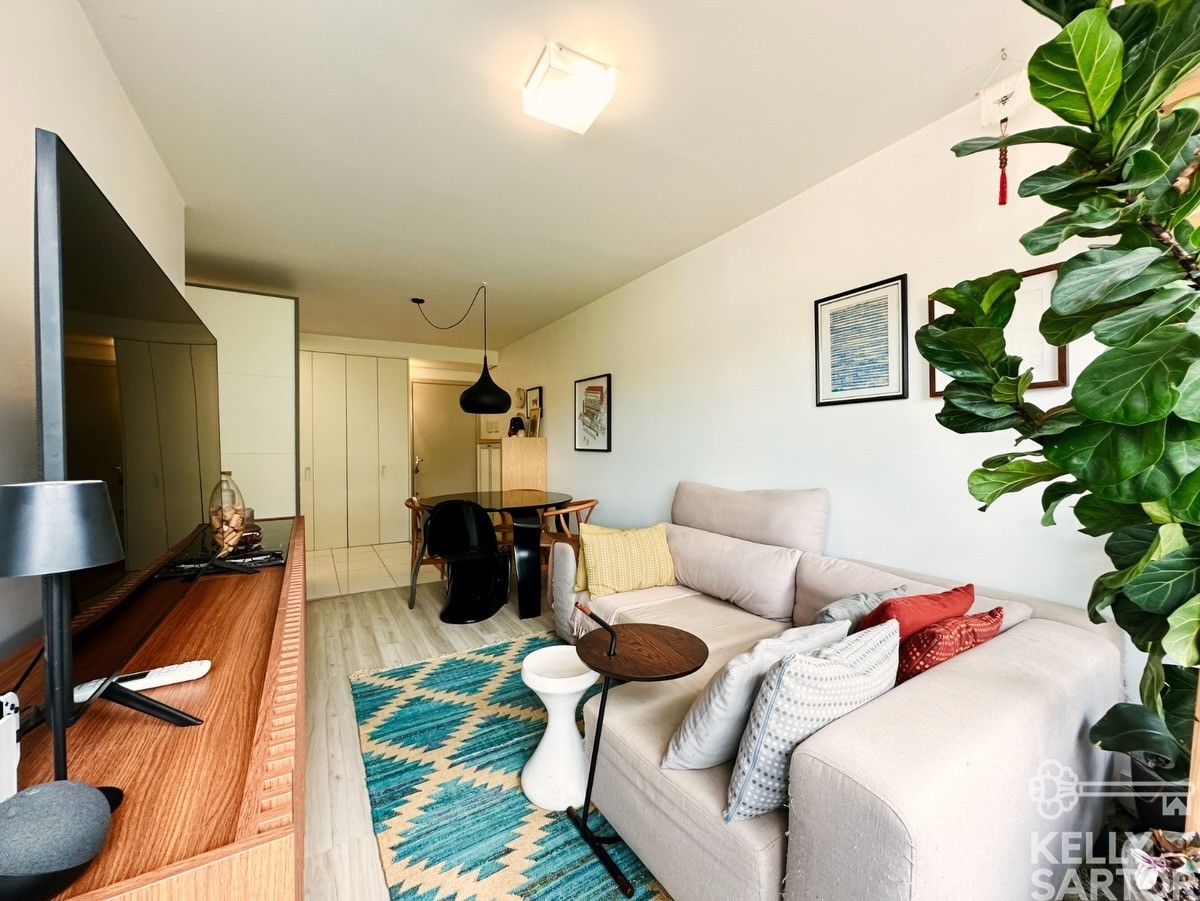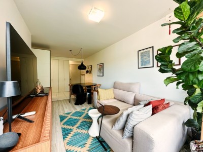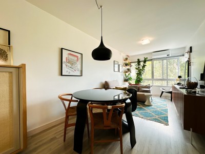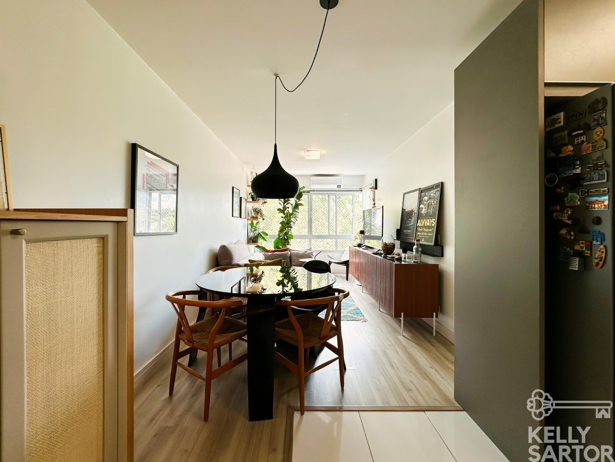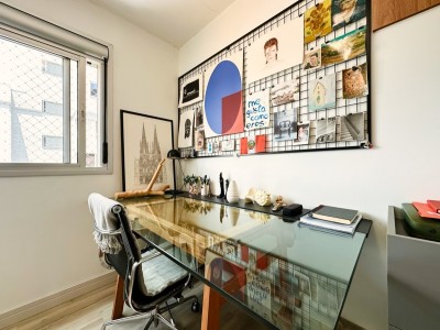 A posição solar Norte/Leste garante ambientes bem iluminados e agradáveis ao longo do dia. O apartamento dispõe de ar-condicionado split na sala de estar, banheiro social com ventilação natural e móveis planejados Todeschini de alta qualidade, que permanecem no imóvel juntamente com todos os móveis fixos.