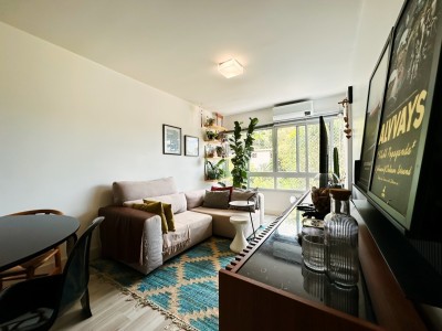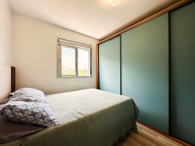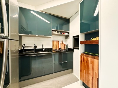 Com 57,00 m² de área privativa, o imóvel conta com 2 dormitórios aconchegantes, sala de estar e jantar integradas com sacada, proporcionando luminosidade natural e uma vista encantadora. A cozinha é equipada e funcional, integrada à área de serviço, além de contar com churrasqueira a carvão, ideal para momentos especiais.