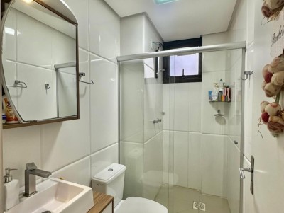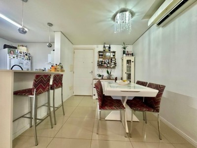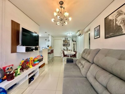 O apartamento conta com acabamento de qualidade, incluindo piso laminado e porcelanato, rebaixo em gesso, água quente com junker instalado e dois aparelhos de ar-condicionado split já instalados. Dispõe ainda de um box de garagem fechado, proporcionando mais segurança e comodidade.
