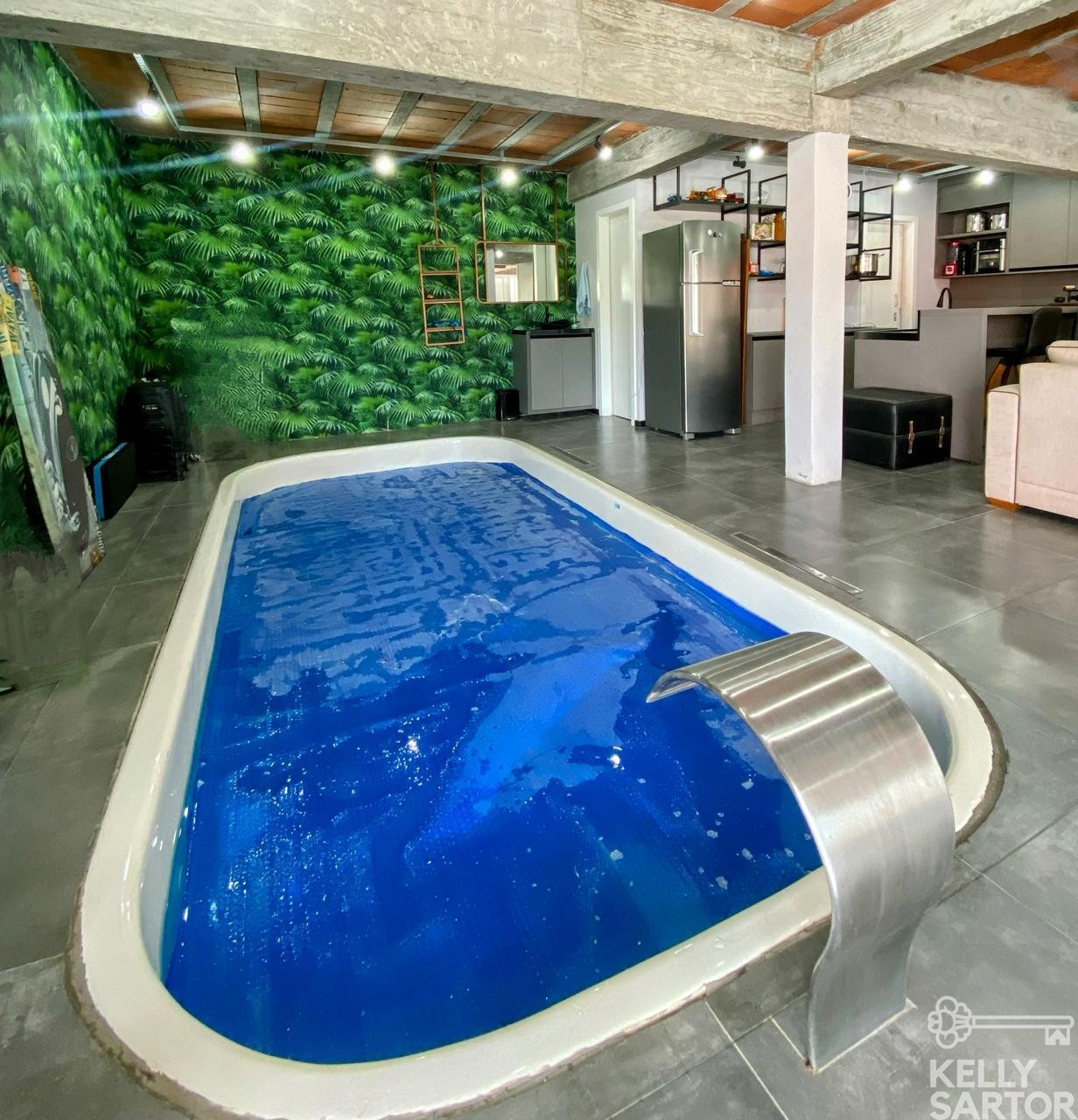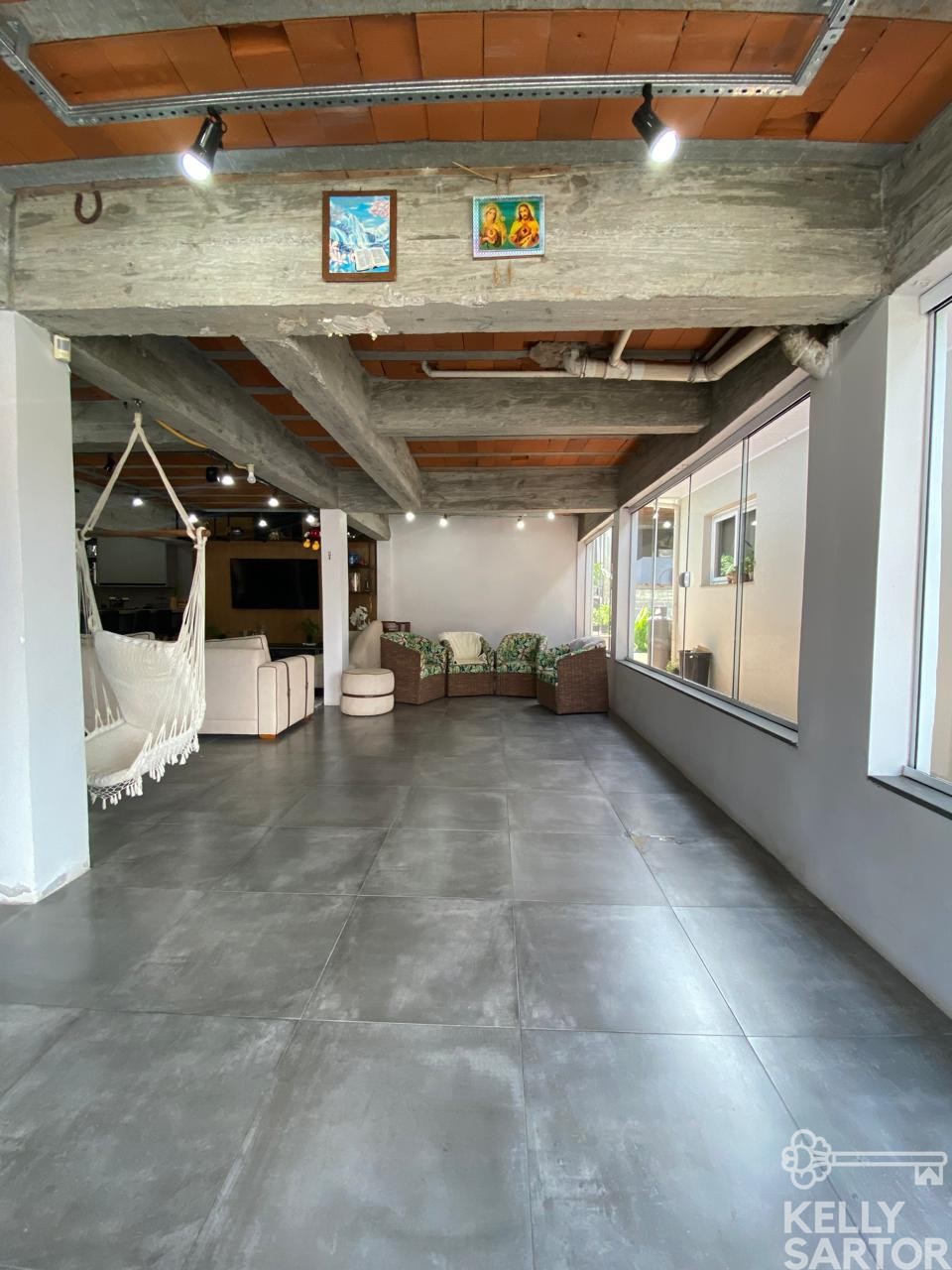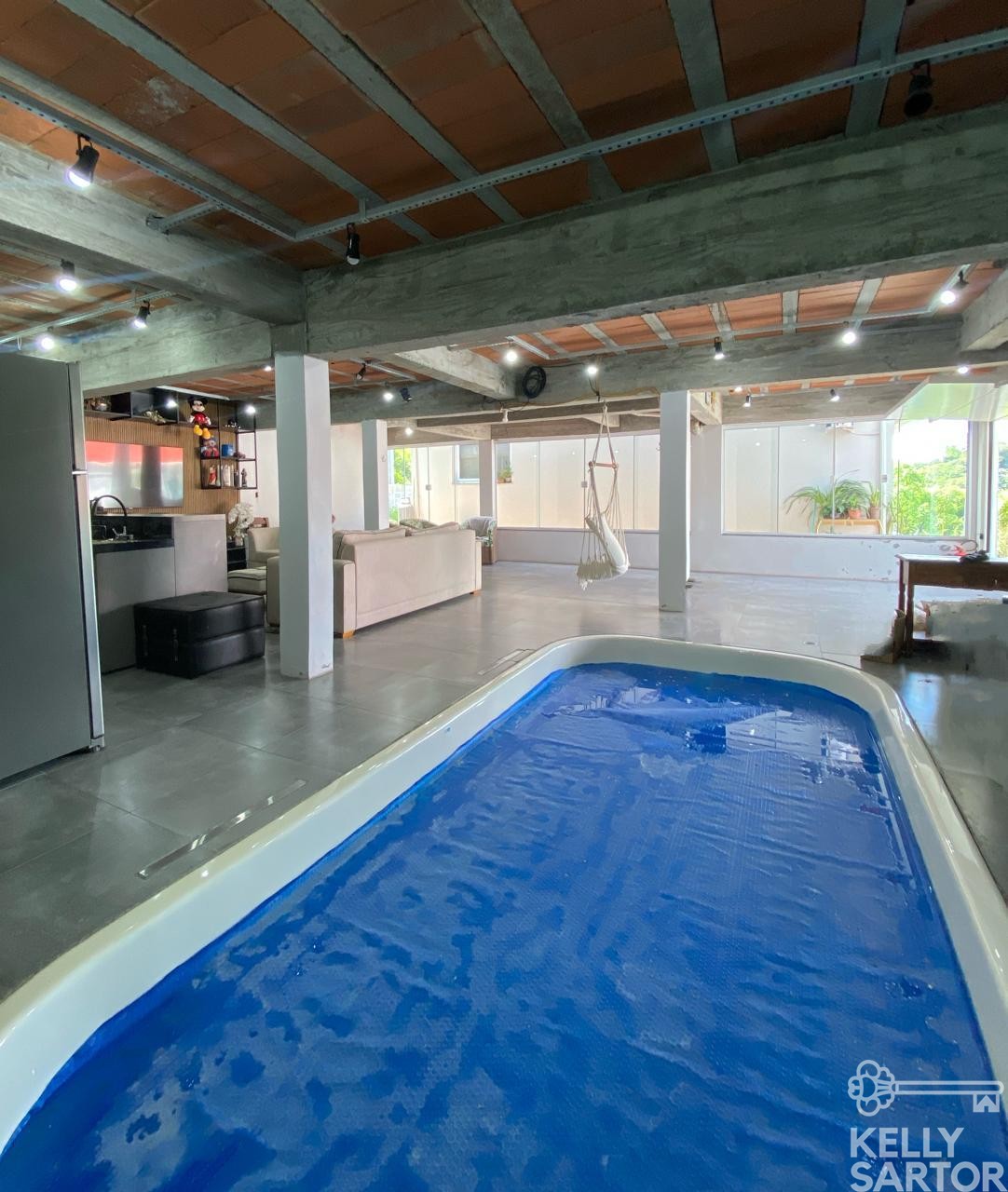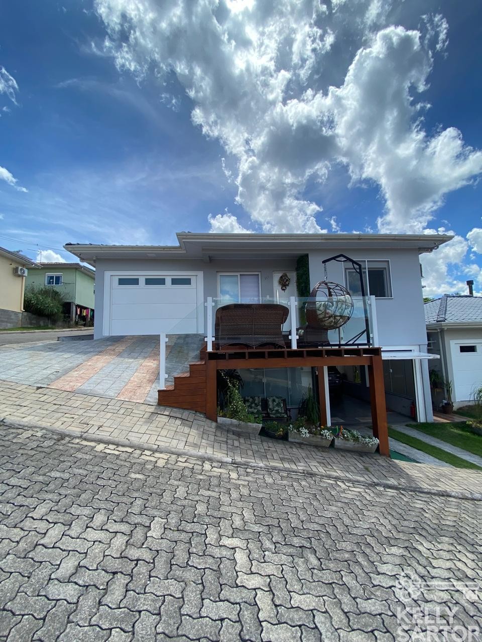 Descrição › KELLY SARTOR VENDE excelente casa localizada no Bairro Cohab, composta por 2 pavimentos em alvenaria, no pavimento superior possui 03 dormitórios, sala e cozinha integrada, lareira ecológica, banheiro, área de serviço e garagem; no pavimento inferior da casa possui piscina aquecida e coberta, salão de festas, depósito, banheiro e sala de estar e jantar, além de 02 vagas de garagem.