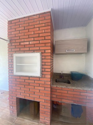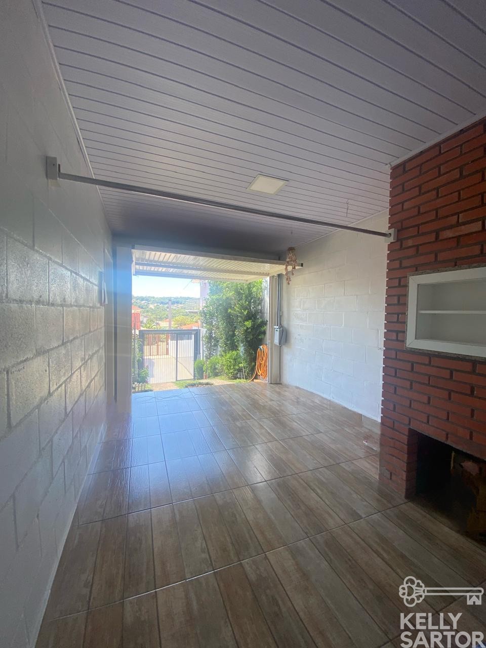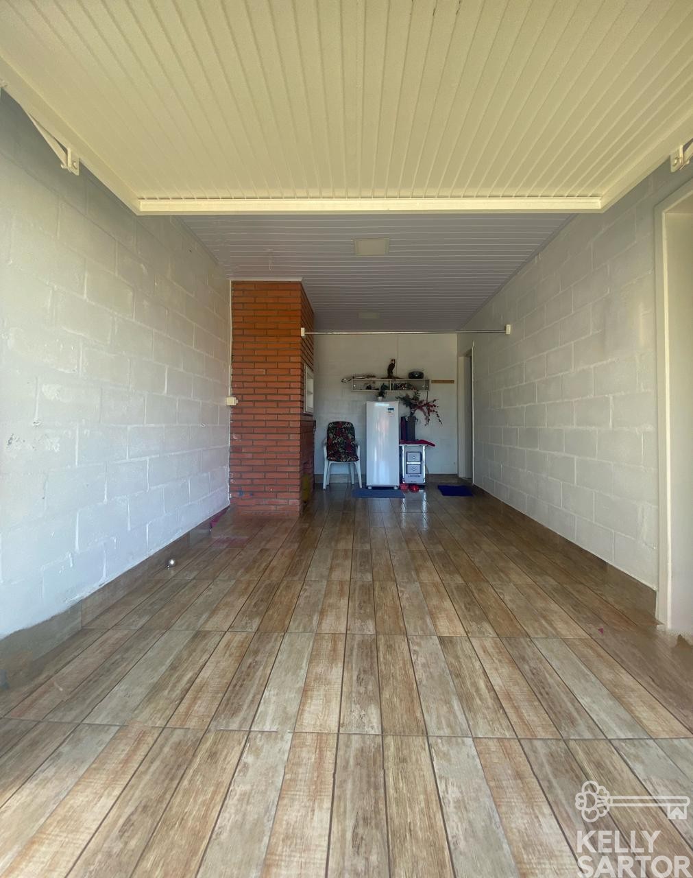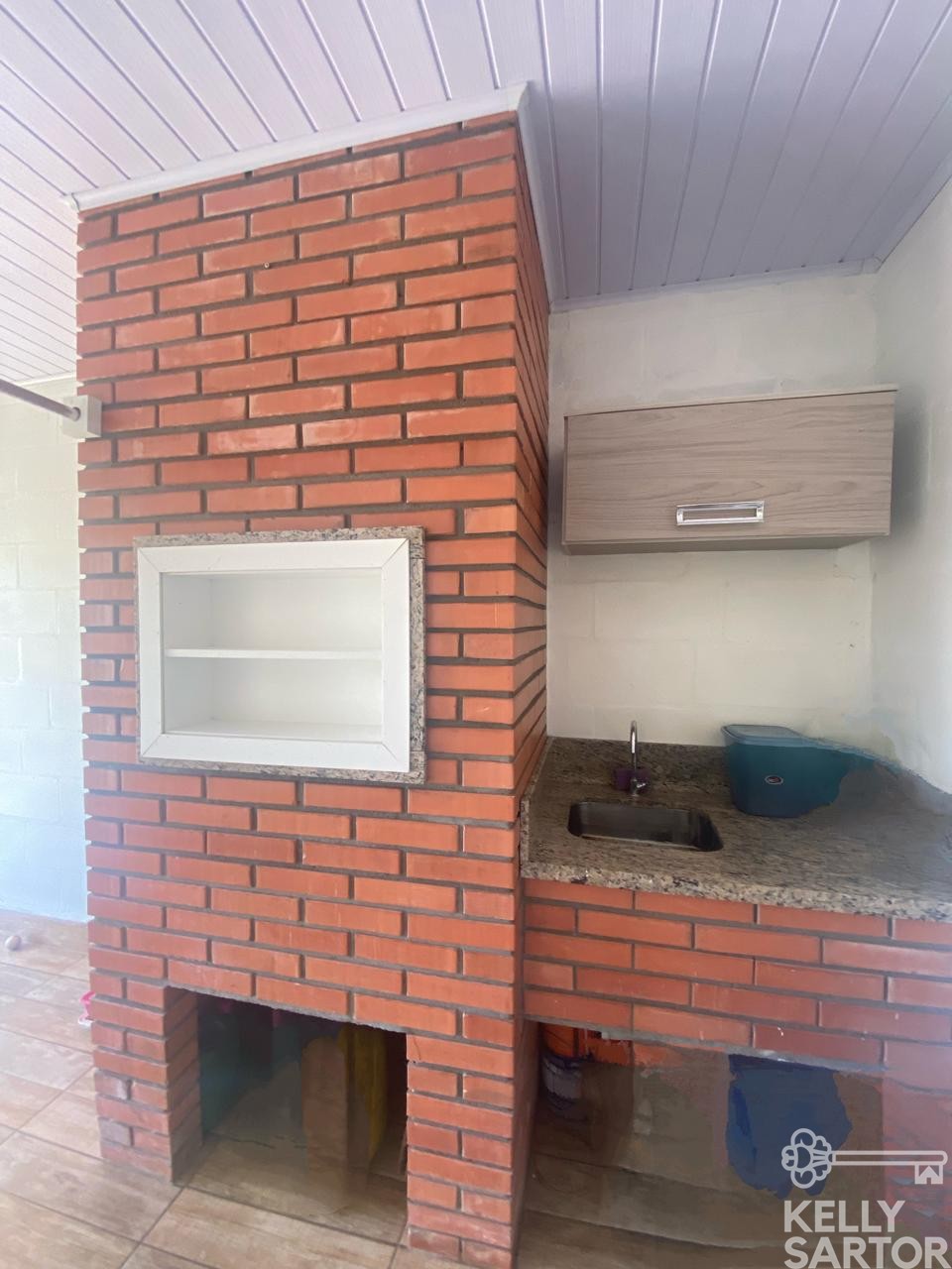 Descrição › KELLY SARTOR VENDE casa térrea semimobiliada composta por 03 dormitórios, sala de estar, cozinha, lavabo, banheiro social, garagem para 01 carro com churrasqueira. Além disso possui pátio cercado.