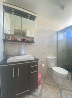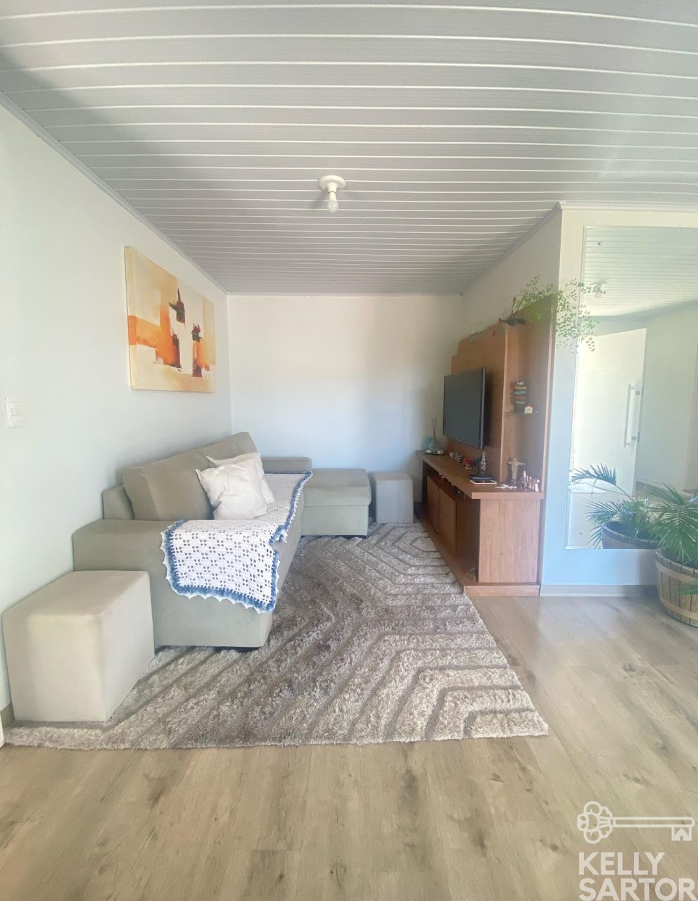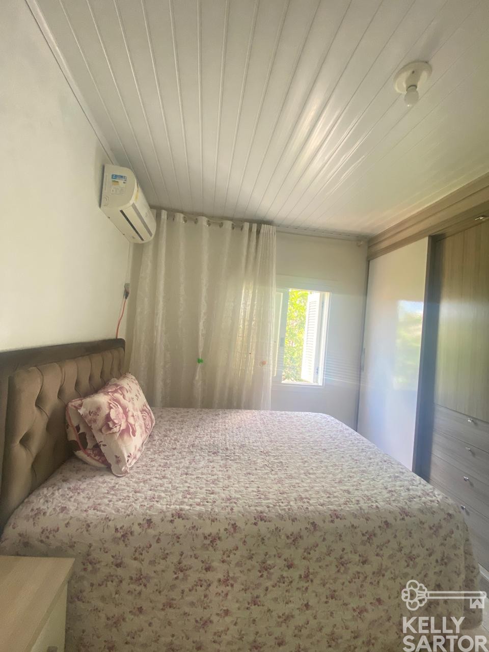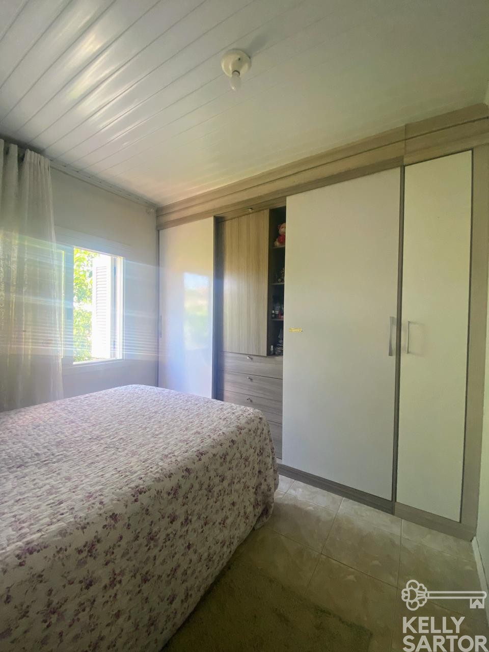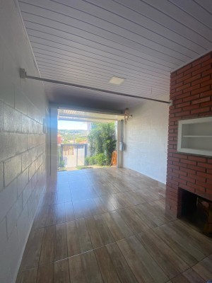Descrição › KELLY SARTOR VENDE casa térrea semimobiliada composta por 03 dormitórios, sala de estar, cozinha, lavabo, banheiro social, garagem para 01 carro com churrasqueira. Além disso possui pátio cercado.