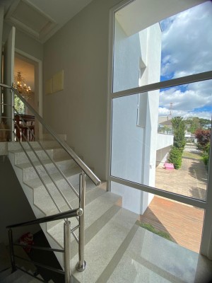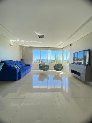 São 3 dormitórios, incluindo uma suíte master com closet, escritório, hall de entrada, sala de jantar e uma elegante sala de estar com lareira e vista panorâmica. A cozinha funcional, a lavanderia separada e os ambientes integrados garantem praticidade no dia a dia. No térreo, garagem coberta para 3 carros e depósito. Já na área externa, um amplo pátio e quintal com churrasqueira criam o cenário perfeito para reunir família e amigos.