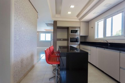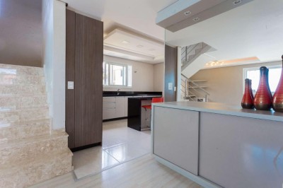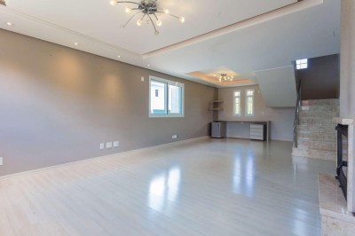 No andar inferior, o destaque fica para a sala de estar com lareira francesa, que aquece toda a casa através de um moderno sistema com serpentina e boiler. Há ainda sala de jantar, cozinha, lavabo, lavanderia separada e garagem para dois carros com churrasqueira. No andar superior, você encontra 3 dormitórios, sendo 1 suíte ampla com sacada aberta e vista agradável. Os dormitórios são espaçosos, bem iluminados e com excelente ventilação natural.