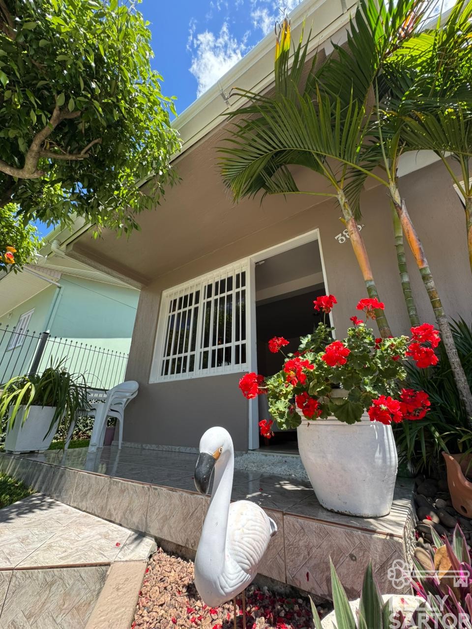O pátio é um verdadeiro diferencial. Na parte frontal, há amplo espaço; nos fundos, o terreno generoso abriga canil e árvores frutíferas, proporcionando contato com a natureza e momentos ao ar livre dentro da própria residência. A excelente posição solar garante ambientes iluminados e agradáveis ao longo de todo o dia.