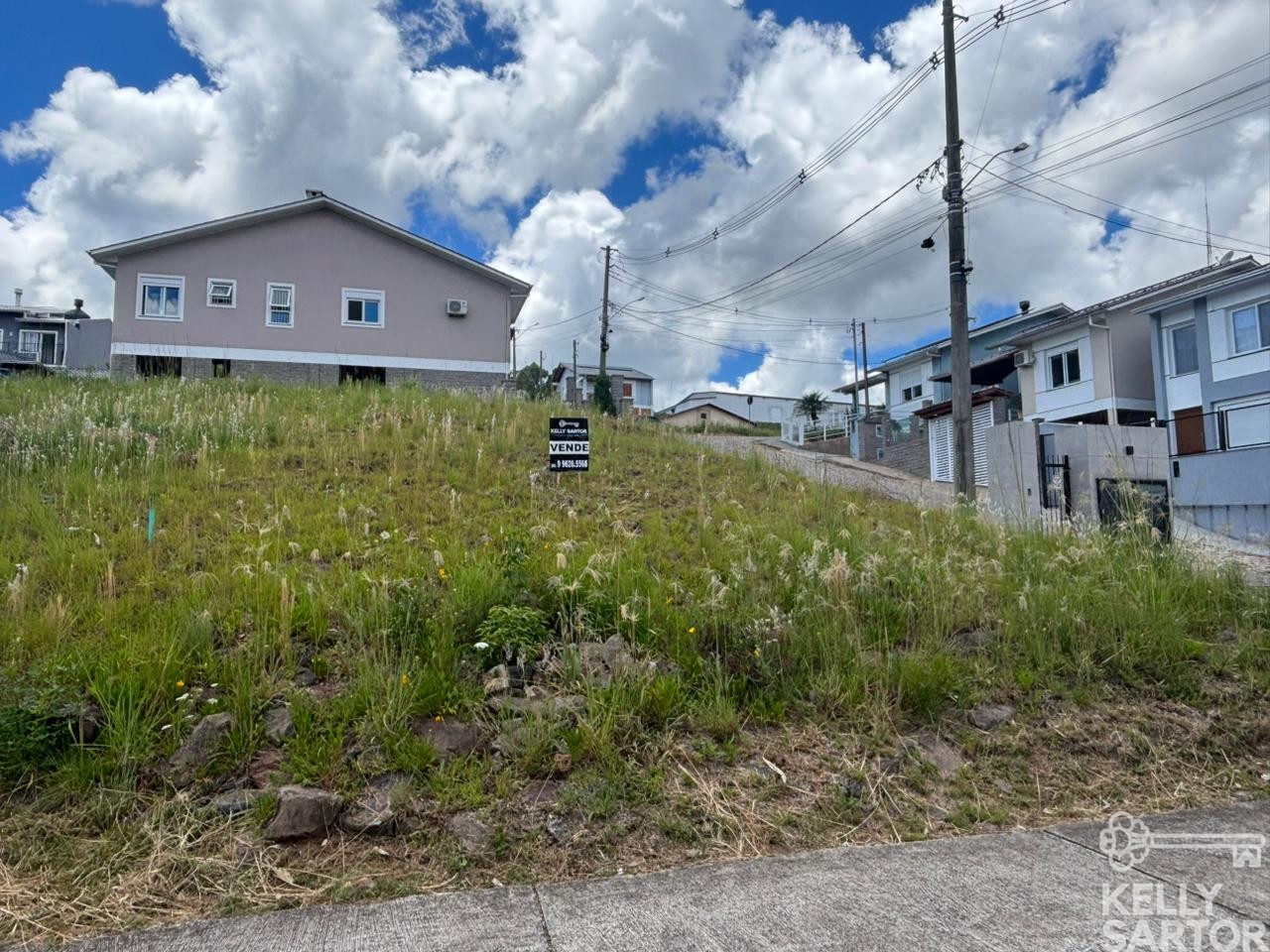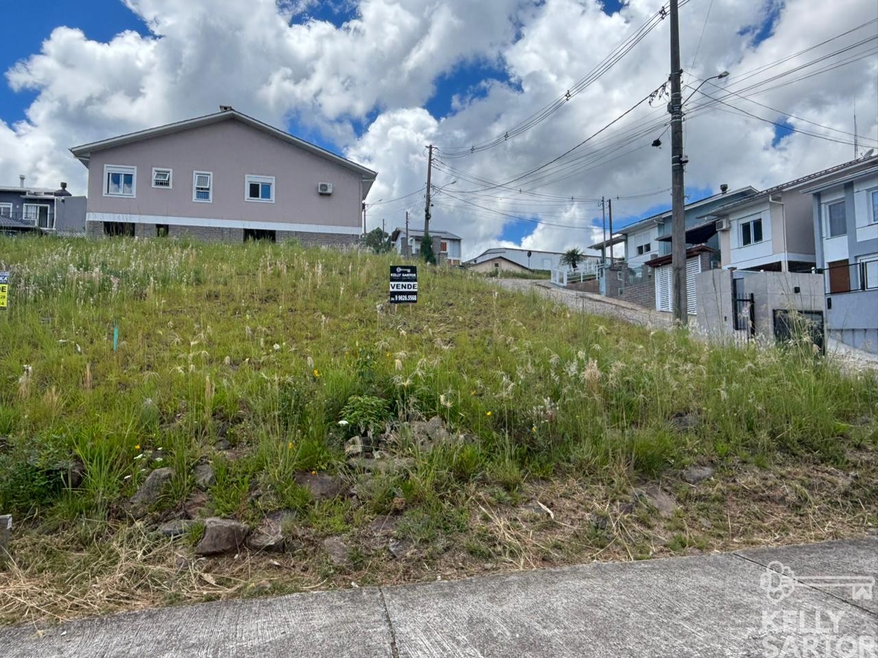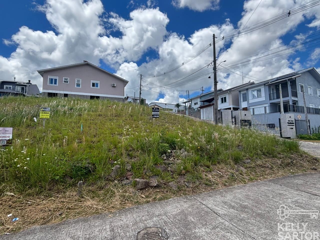 Descrição › KELLY SARTOR VENDE lote de esquina no Condomínio Tiradentes no Bairro Cohab em Bento Gonçalves com 295,19m². Lote pronto para construção, com projeto aprovado e infraestrutura completa.