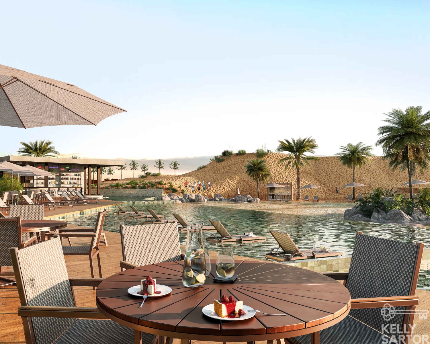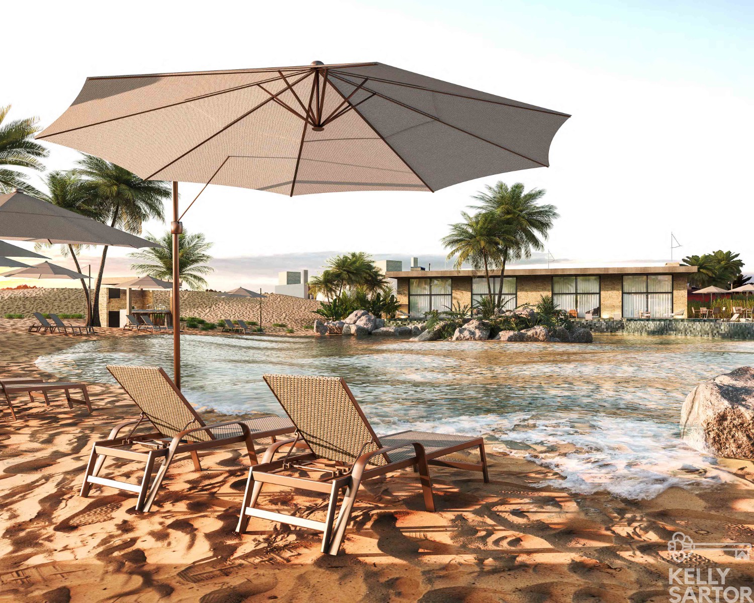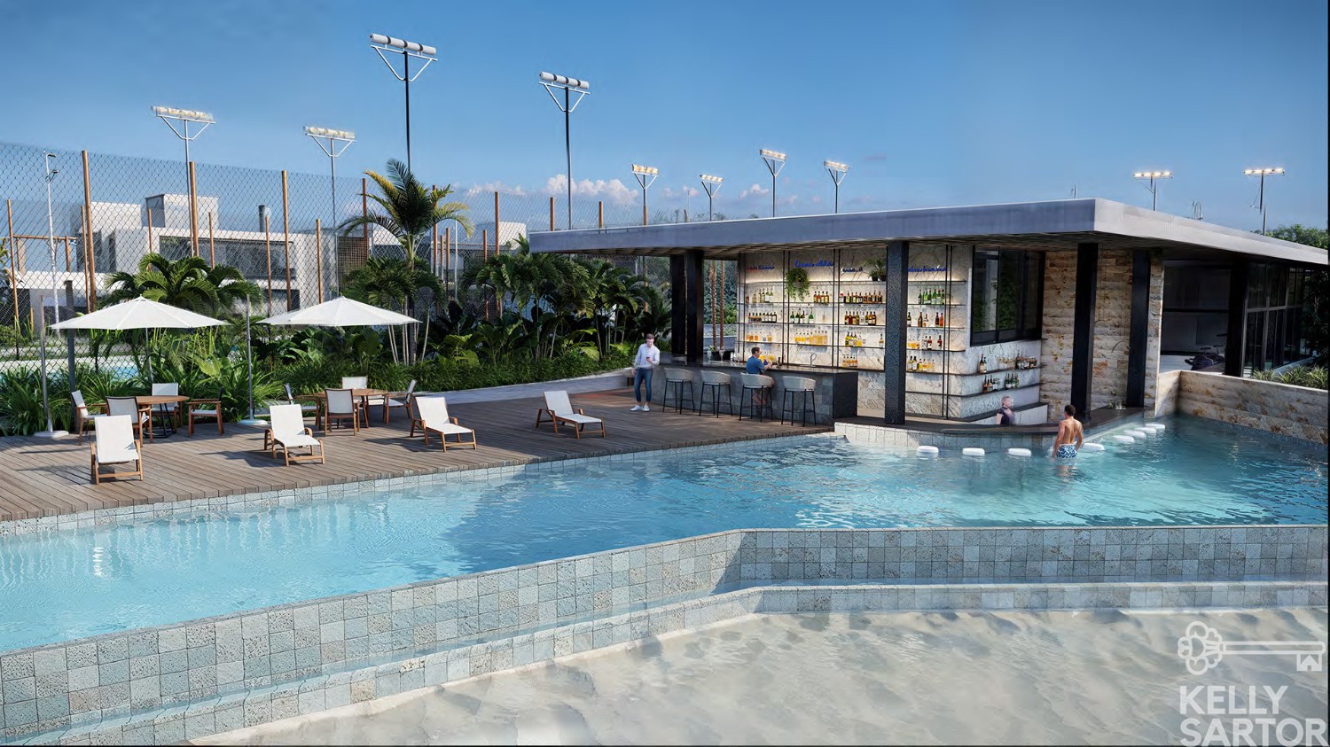 * Piscina com prainha para espreguiçadeiras;
