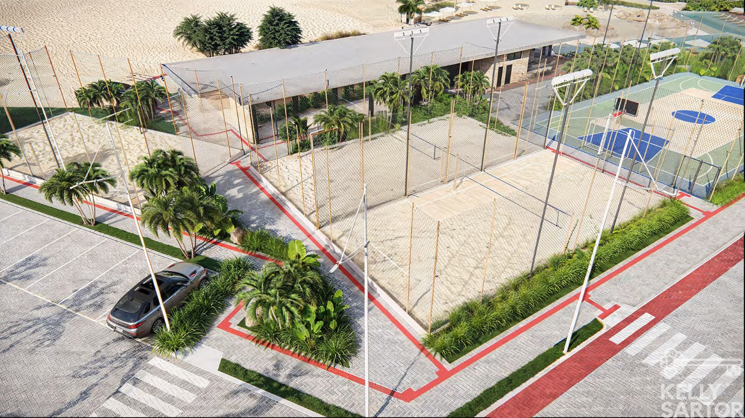 * Complexo de beach tennis com 3 quadras + quadra poliesportiva;