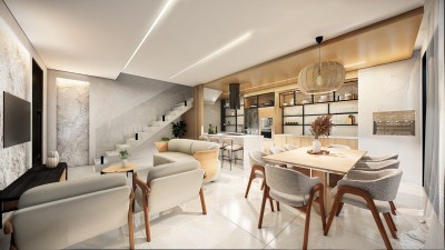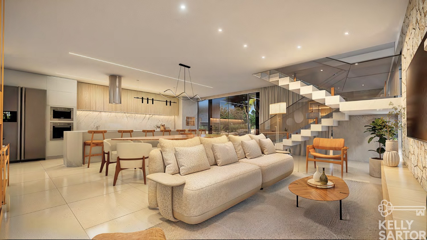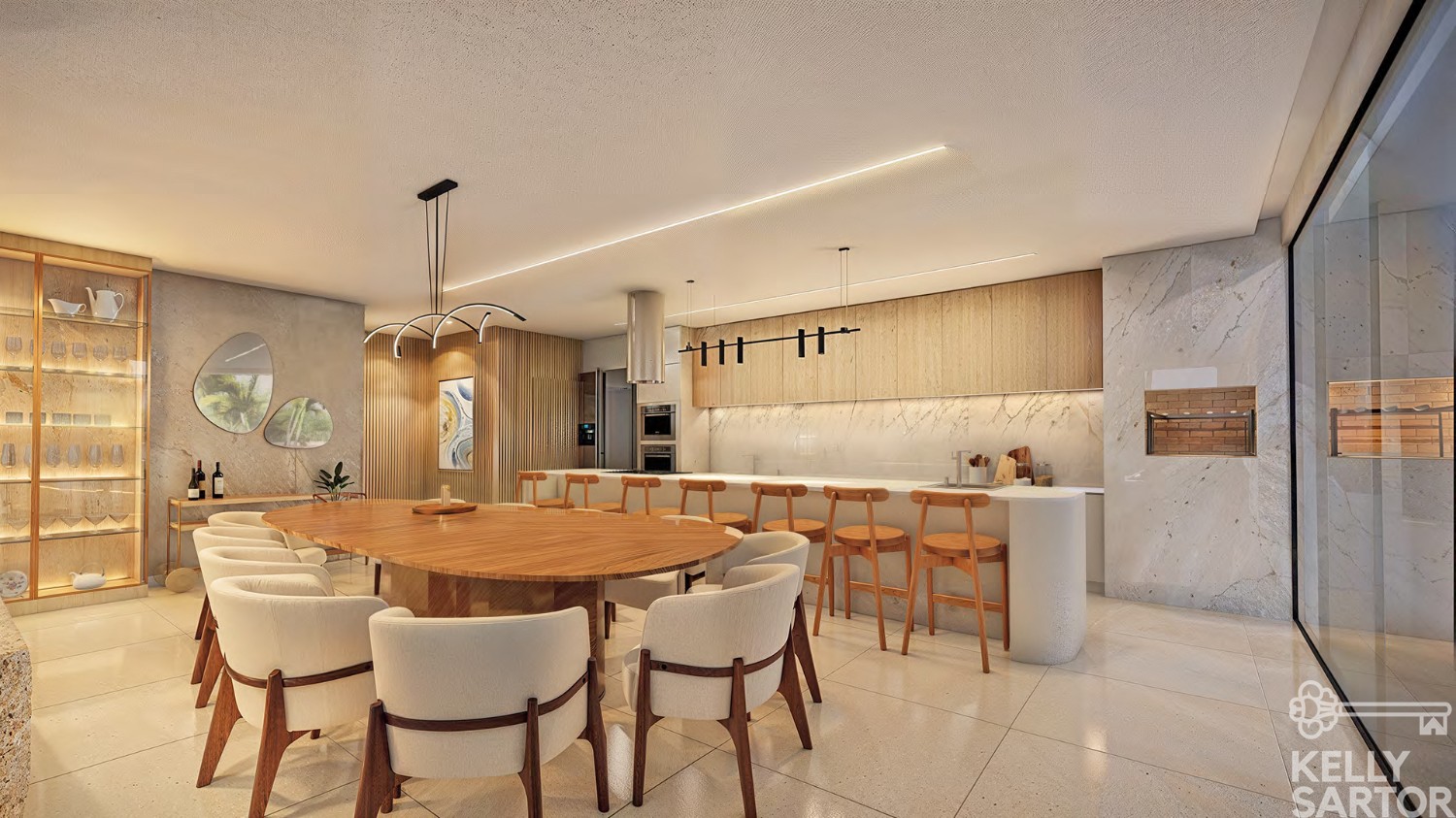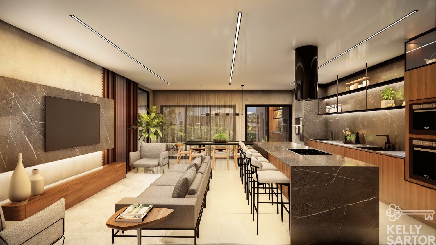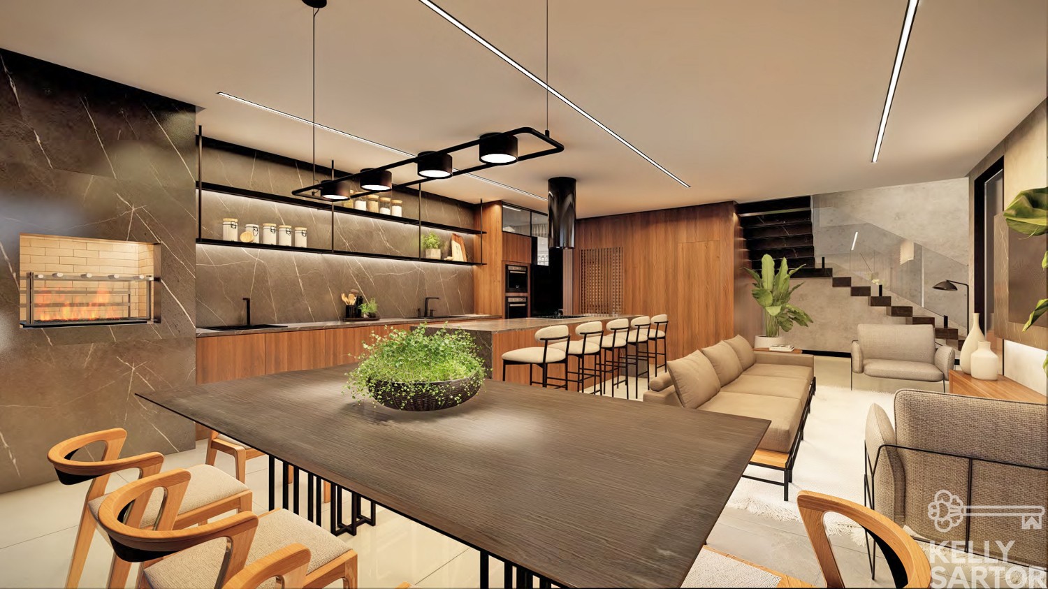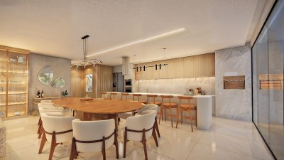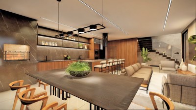 * Cozinha, estar e jantar integrados;