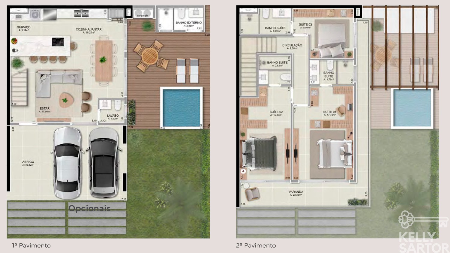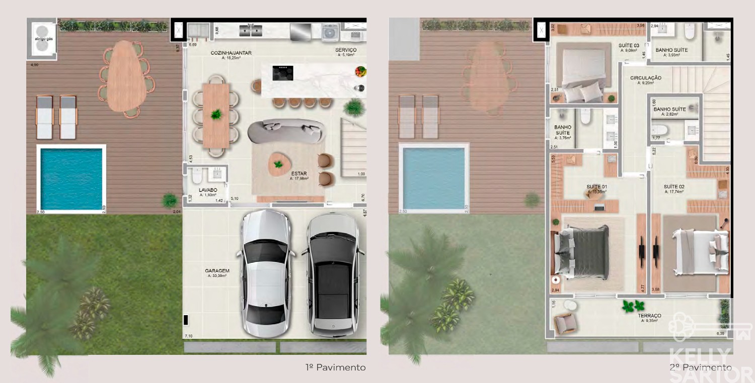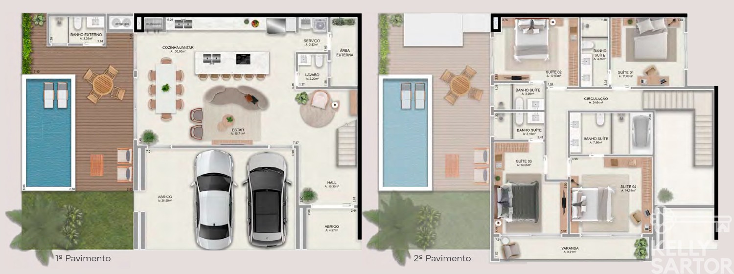 * Adicionais: piscina privativa, banheiro externo, pergolado e ponto de hidromassagem externa.